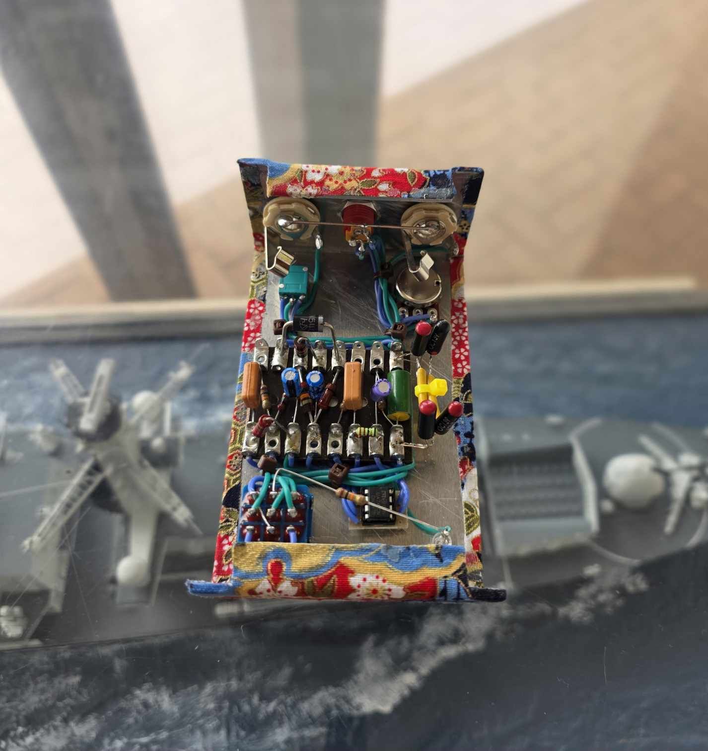 Hand-built on traditional 2-row turretboard using the same topology that powered Randy Rhoads’ fiery tone, this Distortion+ build goes way beyond the usual. Inside, a matched Quartet of Red top OC139 germanium transistors clips your signal with that unmistakable soft edge and searing attack. No surface-mount shortcuts, no PCB here – just pure vintage-style tagboard, wired with care and a sailor’s pride.