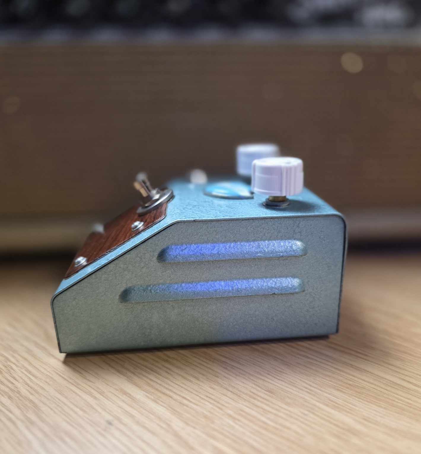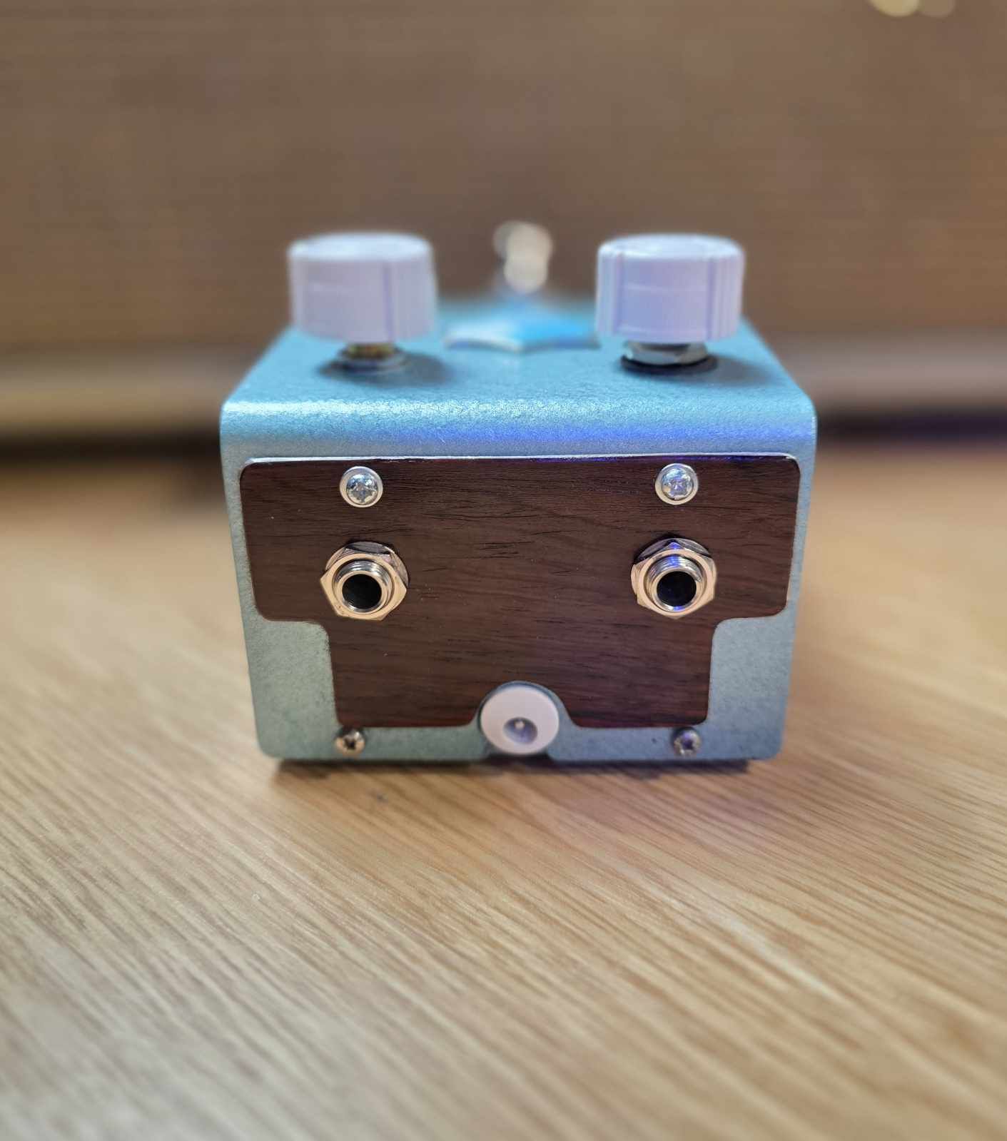 The wood panels change the feel of the pedal immediately. Rosewood has a natural depth and grain pattern that cannot be replicated with modern laminates. The surface has been finished lightly so the wood remains tactile rather than glossy.