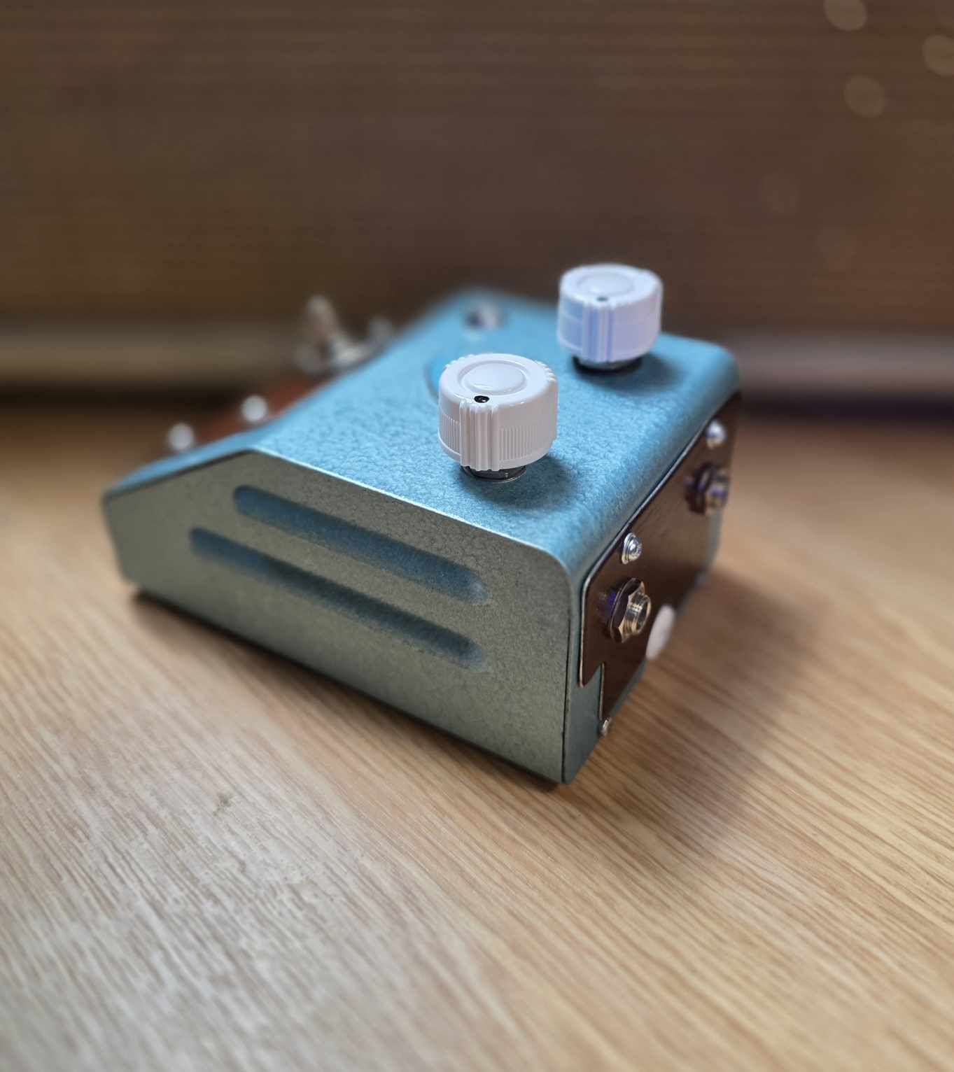 A vintage NOS CTS potentiometer handles the output control. These pots were widely used in American amplifiers and instruments and are known for their smooth mechanical feel and consistent taper.