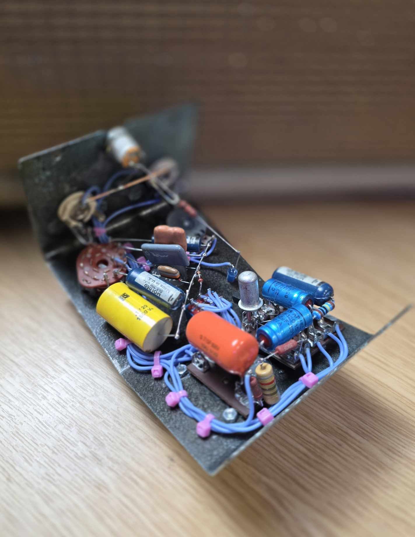 A large British made RS Components 1.5Kv capacitor sits within the input network alongside a substantial NOS Orange Drop capacitor used within the tone shaping section. These parts were chosen for both reliability and the way they behave under signal.